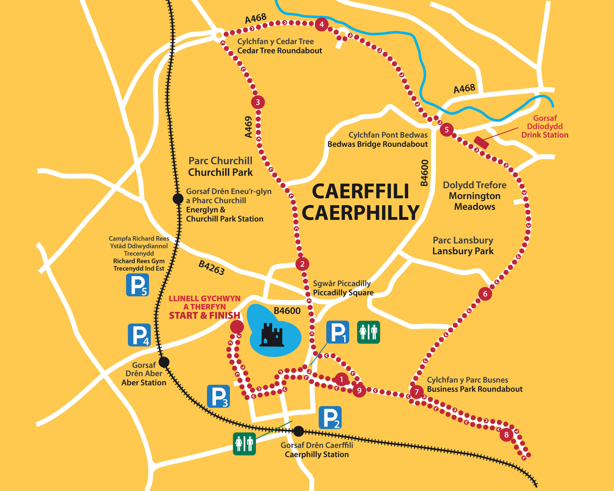 Ac yntau’n digwydd yng nghysgod Castell Caerffili, bydd Ras 10 Cilomedr Caerffili Bryn Meadows yn dechrau ac yn gorffen ar Crescent Road. Bydd rhedwyr yn cael cyfle i gyflawniamser da ar lwybr wedi’i ailgynllunio, a gafodd ei greu yn dilyn adborth rhedwyr. Mae’r llwybr yn fwy gwastad, mwy cyson drwy ganol y dref. Bydd y cwrs yn arwain cyfranogwyr drwy ganol y dref, ac o’i chwmpas, gan fynd heibio tirnodau eiconig, gan gynnwys y cerflun enfawr o gaws a cherflun Tommy Cooper, ar hyd y ffordd, ac yn cynnig golygfeydd gwych o’r castell canoloesol, sy’n gefndir syfrdanol i’r digwyddiad blynyddol.